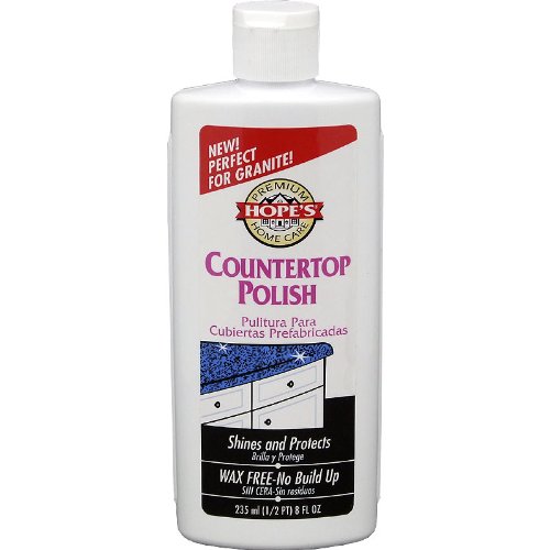 Quickly and easily enhances the beauty of your countertops by producing a deep rich shine that repels dirt, minimizes stains and makes cleaning much easier. Hope's Countertop Polish is great for use on all of the following laminates and solid countertop materials: Formica, Corian, Swanstone, Wilsonart Gibraltar, Avonite, Nevamar, Surell, Pionite, and Fountainhead by Nevamar. Unlike ordinary polishes, this polish is both safer and more effective than similar products. It contains no waxes, no mineral oils, no harsh chemicals or abrasives and no silicone resins.